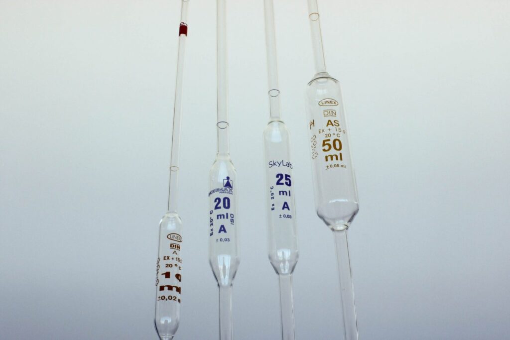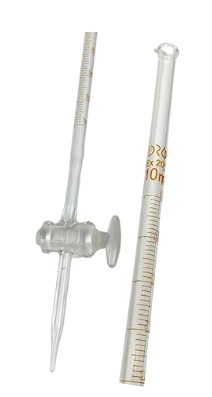 A ferramenta essencial para titulações. É um tubo longo, vertical e muito bem graduado, com uma torneira (registro) de precisão na ponta inferior. Você enche com o titulante, abre a torneira com controle e deixa o líquido escoar gota a gota sobre a amostra. A leitura do volume gasto, feita antes e depois, deve ser extremamente cuidadosa. Dominar a bureta é um rito de passagem no laboratório de química analítica.