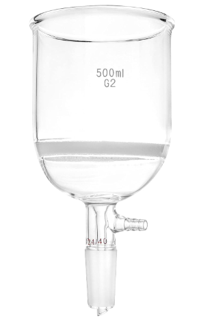 É um funil de porcelana (às vezes de plástico) de haste curta e larga, com um disco perfurado no fundo. Ele não funciona sozinho! Você acopla ele a um Kitassato (um frasco de paredes grossas com uma saída lateral) usando uma rolha de borracha ou adaptador. Coloca-se um papel de filtro circular sobre o disco, umedece e aplica vácuo na saída do Kitassato. A sucção faz a filtração ser muito rápida, ideal para coletar sólidos (precipitados, cristais).
