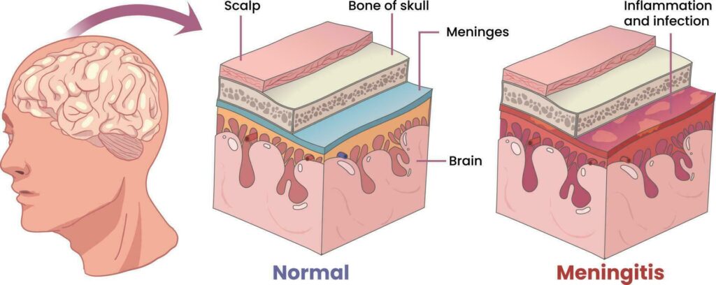 A meningite é um processo inflamatório das meninges, membranas que recobrem o sistema nervoso central (SNC). Essa inflamação ocorre quando vírus, bactérias, fungos ou micobactérias invadem o espaço subaracnóideo, local onde circula o líquor.